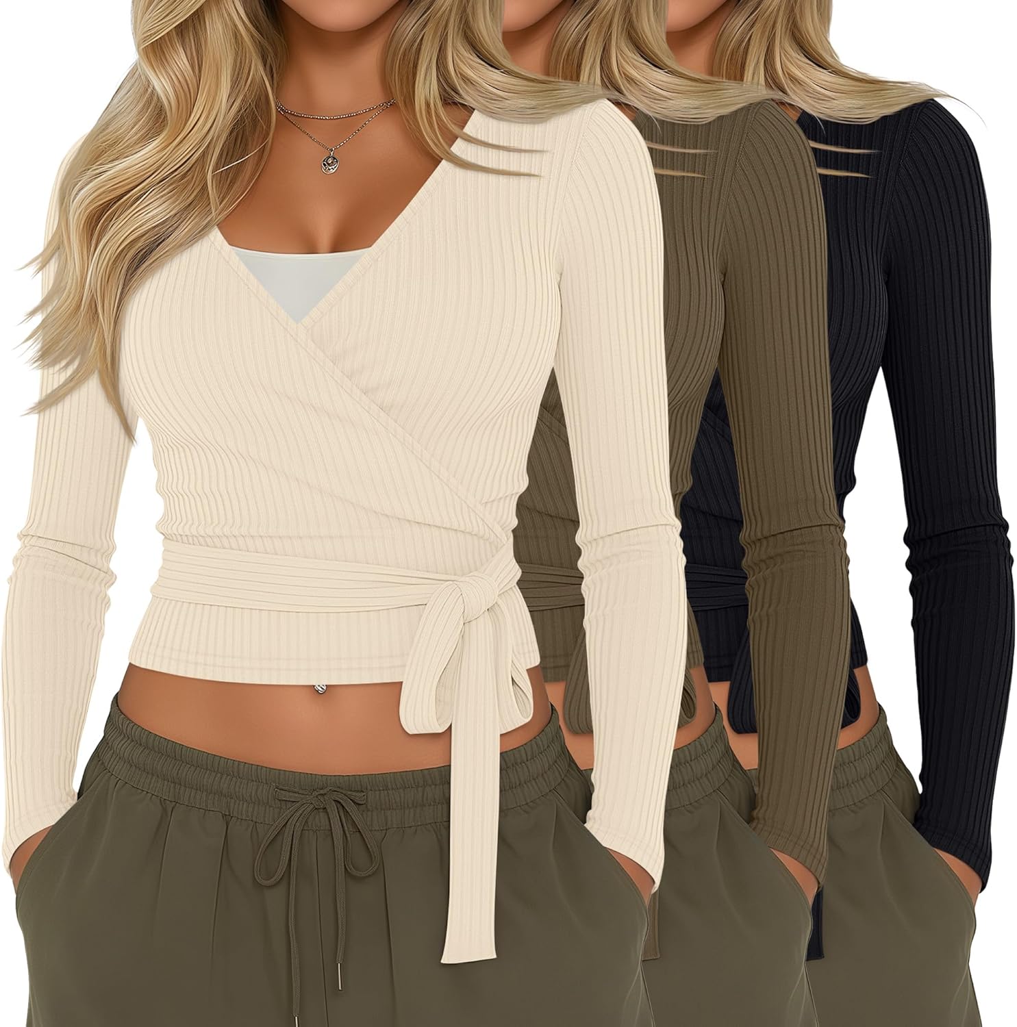 Features: The women's long sleeve cross wrap tops are made of comfortable and elastic fabric, tie closure let you easily put on and take off, they can wear with a base layer, suitable for a variety of occasions. The fabric is wrinkle resistant and easy to care for, to maintain color and shape, machine wash or hand wash recommended, quick to look neat after drying, saves your time, suitable for busy lifestyles. Specifications: Material: 95% Cotton, 5% Spandex Package includes: 3x Women's cross wrap tops Notes: Manual measurement, please allow slight errors on size. The color may exist a slight difference due to different screen displays