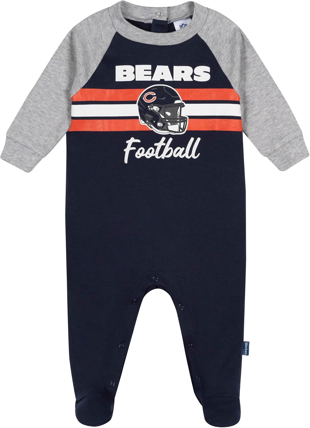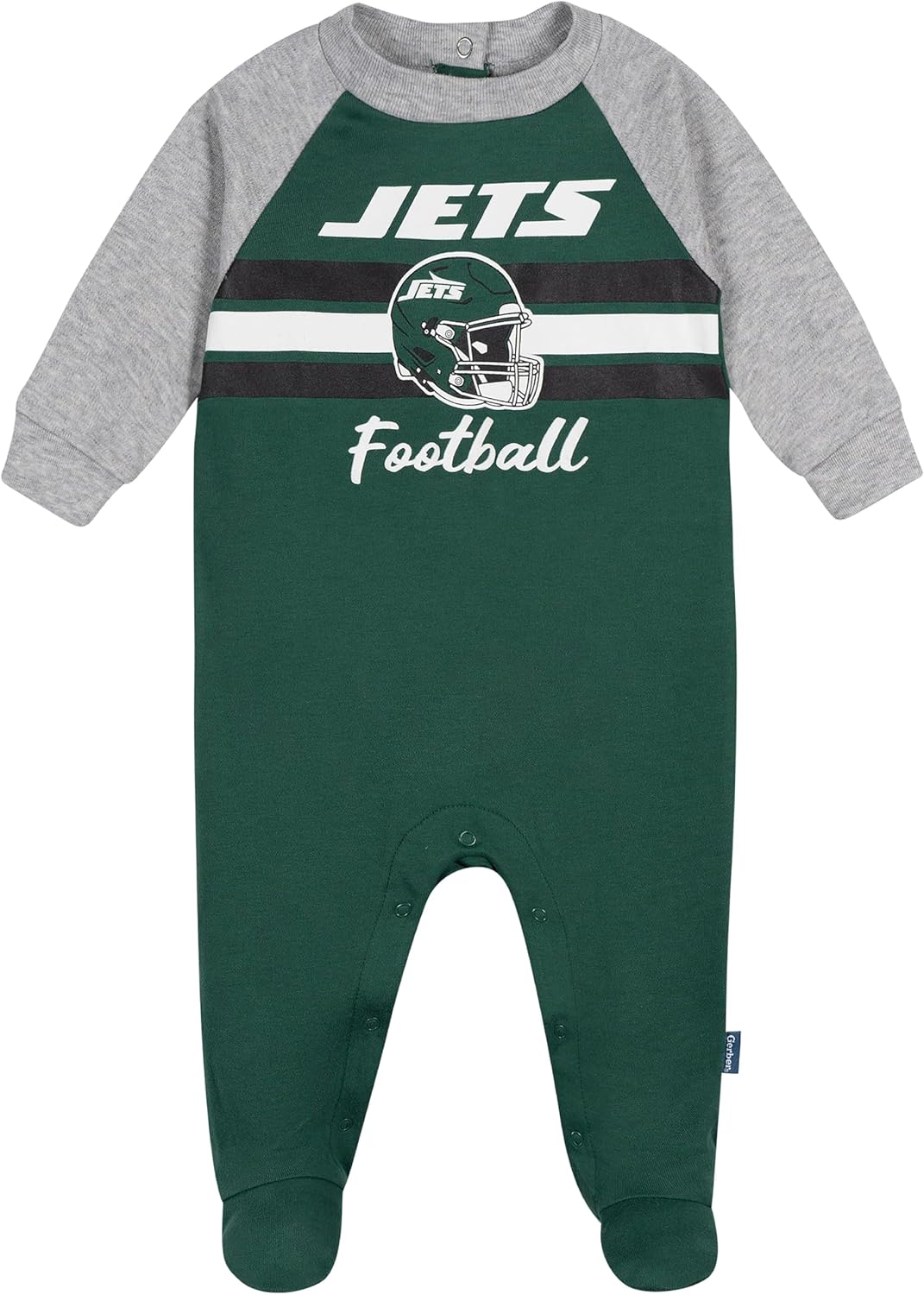 Keep your baby boy warm and game-day ready with this NFL footed coverall pajama. Crafted from soft, durable interlock cotton, this one-piece offers a thick, premium feel designed for cozy comfort from kickoff to naptime. Thoughtful details like leg snaps and dual back neckline snaps make changes quick and simple, while ribbed cuffs and a snug neckline ensure a secure, flexible fit as baby moves and sleeps. A bold team logo and helmet graphic, complete with eye-catching gold accents, brings standout team spirit to bedtime or playtime. Whether worn for lounging, sleeping, or showing fan pride, this officially licensed NFL baby coverall is a win for baby and parents alike.
