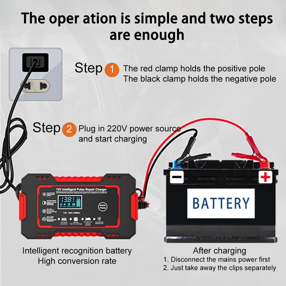 🛵 Is your car or motorcycle battery losing power after sitting for a while?💚 A weak battery can make starting your vehicle frustrating—especially after it has been parked for days or weeks. This 12V smart battery charger is designed to safely charge and maintain most lead-acid batteries, helping keep them in good condition so your vehicle is ready when you need it.⚙️【Product Specifications】🔌 Product Name: Trickle charger for Kawasaki Vulcan S 2015-2024🔌 Battery Type: 12V Lead-Acid Batteries🔌 Product Size: 150 × 85 × 62 mm🔌 Input Cable Length: 90 cm🔌 Output Cable Length: 65 cm🏍️【Product Features】🔋 Automatic Charging & Maintenance: Once the battery is fully charged, the charger automatically switches to maintenance mode. This allows you to leave the charger connected for longer periods without worrying about overcharging, helping keep the battery in good condition and ready for the next start.🔋 Pulse Repair Function: The built-in pulse repair feature helps revive batteries that have been sitting unused or have dropped to a low voltage. Think of it as a gentle recovery process that can help improve battery performance over time.🔋 Simple & Easy to Use: With a single mode button and a straightforward interface, the charger is easy to operate without complicated settings.🔋 Wide Compatibility: Suitable for most 12V lead-acid batteries used in motorcycles, scooters, ATVs, lawn tractors, and small cars.‼️【Important Notes】❗ Connect the clamps according to the polarity markings on the charger.❗ Designed for 12V lead-acid batteries only. Do not use with lithium batteries.❗ This product is suitable for daily charging and battery maintenance.